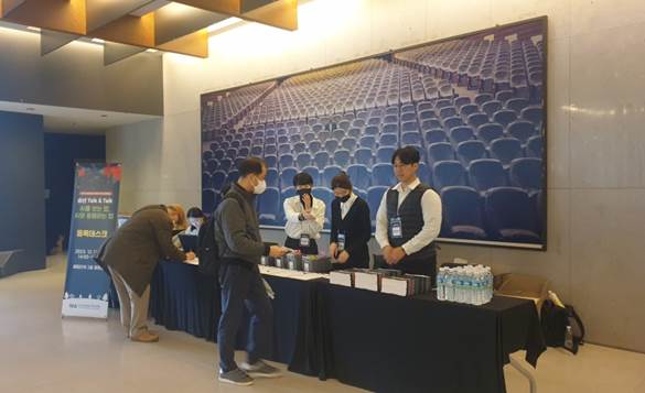 빅터시스템은 세미나 현장에서 기념품 세팅, 등록대 안내 및 응대, 현장 참가자 체크인, 무대 전환 보조 등의 운영 업무를 맡아 진행했습니다.