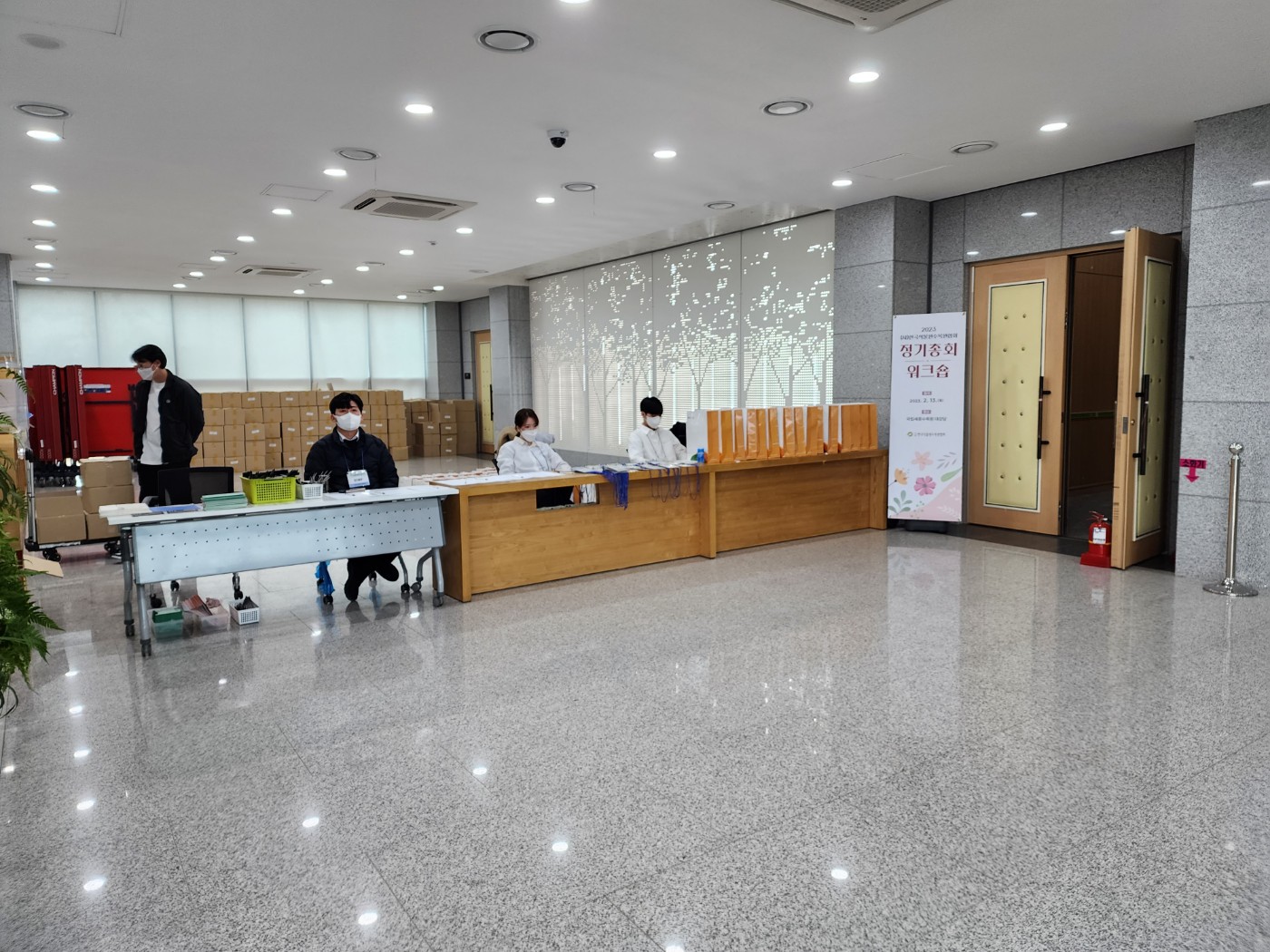 빅터시스템은 정기총회 현장에서 참석자 안내, 명찰 배부, 착석 유도, 무대 전환, 운영 보조 등 전체 현장 운영을 지원했습니다.