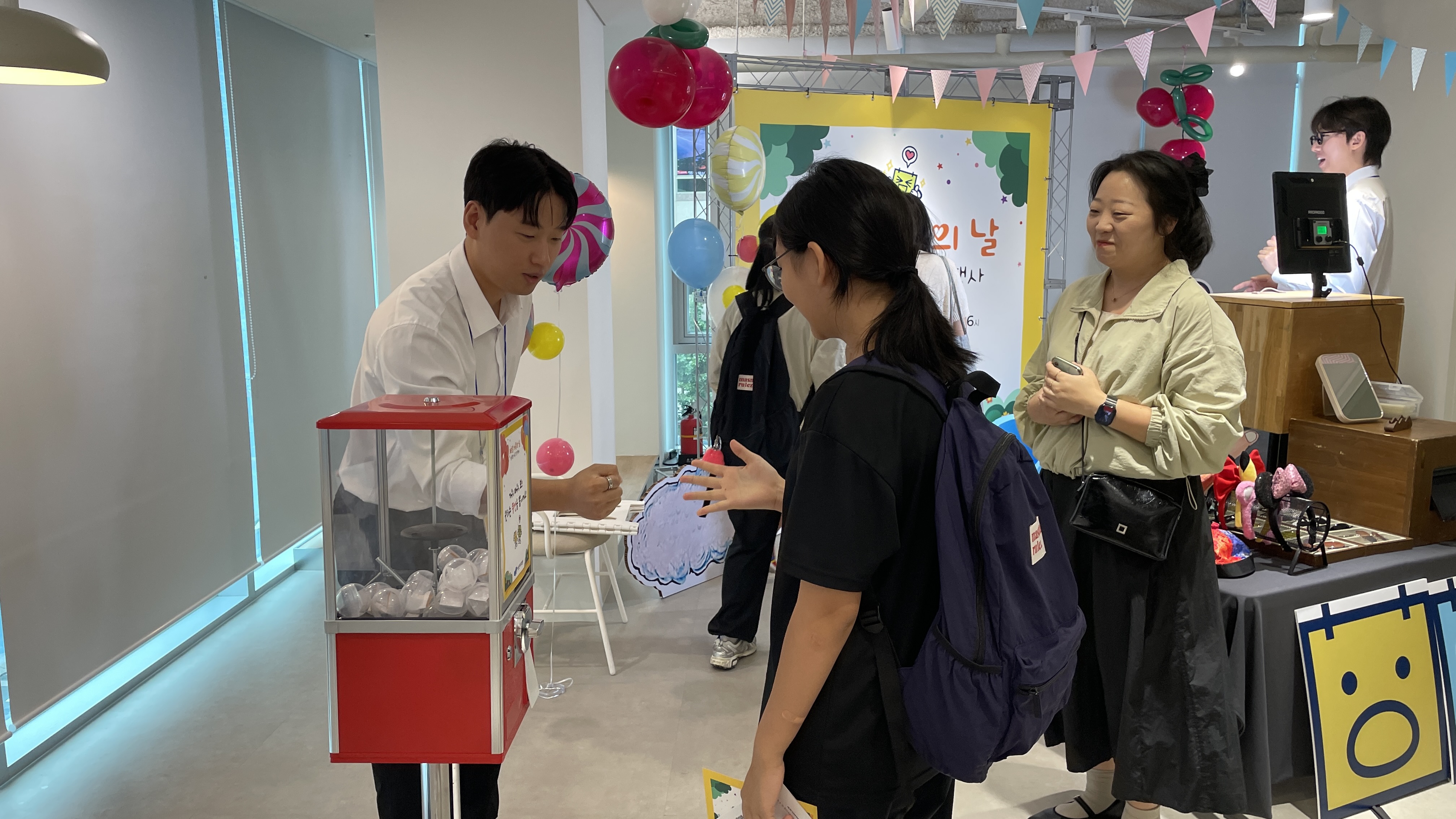 본 행사일에는 임시 사원증 발급, 포토존 운영, 층별 사무실을 돌며 미션을 수행하는 스탬프 투어, 뽑기 게임과 풍선 증정 등 다양한 체험 프로그램을 관리하였으며, 무대에서는 간단한 레크리에이션과 마술 공연 등이 진행되었습니다.